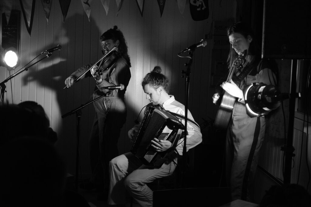 - Vi kommer med det relevante mandskab: lydtekniker, afvikler og selvfølgelig musikerne. I alt 3 – 7 personer
